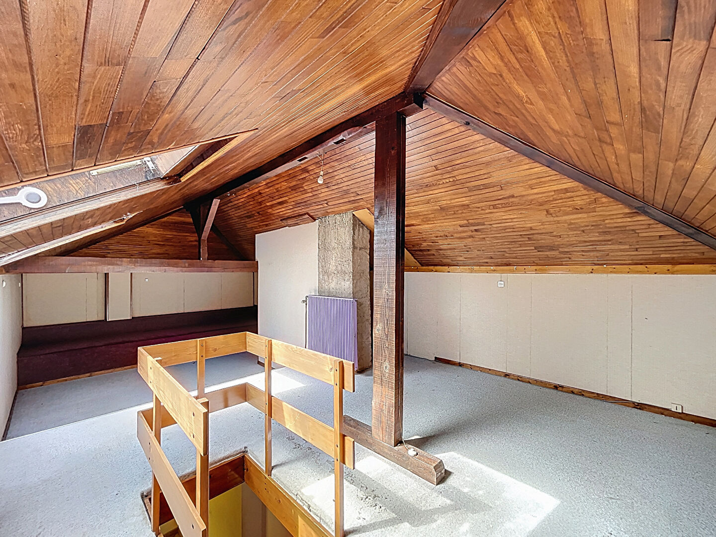 Depuis l’entrée, un accès direct conduit à l’espace nuit comprenant trois chambres accueillantes et une salle de bain. Pour les projets d’agrandissement, le comble aménagé ? bien qu’il ne dispose pas d’un escalier direct ? offre un potentiel considérable pour y créer une suite parentale, à condition d’aménager une trémie d’escalier.