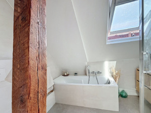 Il se compose d’une vaste entrée desservant trois chambres, une salle de bains ainsi qu’une cuisine indépendante. A l’étage, sous les combles, vous profitez d’un lumineux salon-séjour offrant de beaux volumes et une atmosphère chaleureuse. Les nombreuses ouvertures permettent une aération optimale.