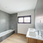 L’ensemble est chauffé grâce à un plancher chauffant raccordé à une pompe à chaleur AIR/EAU.