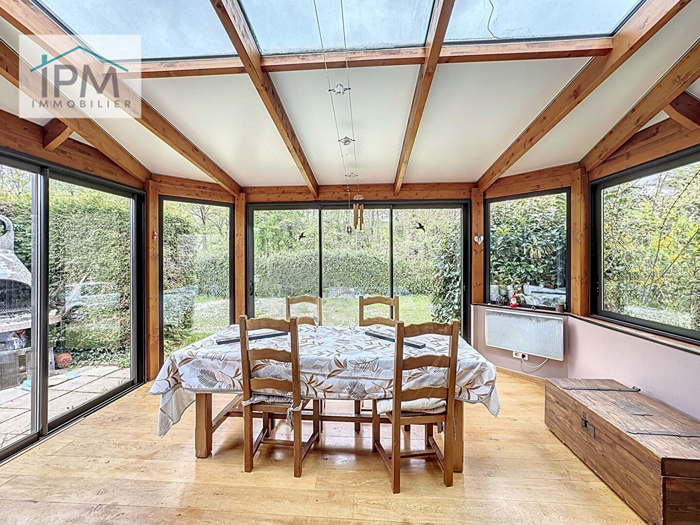 Au rez-de-chaussée, vous découvrirez une cuisine équipée et aménagée, ouverte sur un salon lumineux, avec un accès direct à une véranda sans vis-à-vis, idéale pour profiter de l’extérieur en toute intimité. Ce niveau comprend également une chambre ainsi qu’une salle d’eau.