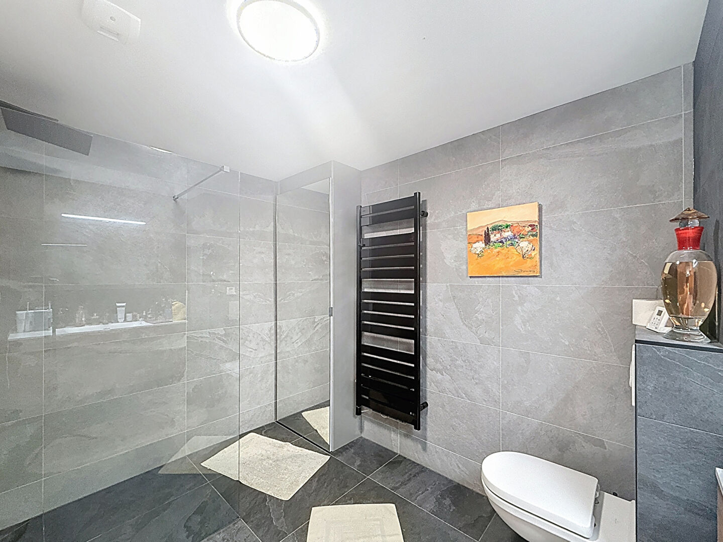 Ce bien dispose de 3 belles chambres dont une suite parentale avec grand dressing et salle d’eau composée d’un meuble vasque, d’une douche à l’italienne, un wc et d’un rangement sur mesure pour sèche linge et lave linge