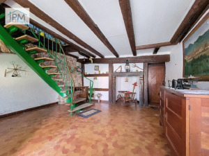 Au 1er étage : un dégagement, un salon / salle à manger, une cuisine, une salle de bains avec WC et deux chambres.