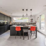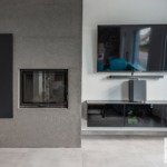 Cette maison, pensée pour un confort absolu, est équipée d’un chauffage au sol sur l’ensemble de ses niveaux et d’un carrelage contemporain en 60×60 cm. Les baies vitrées du rez-de-chaussée sont agrémentées de brise-soleil orientables (BSO) pilotés par domotique, tandis que l’étage bénéficie de volets automatisés.