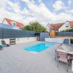 A l’extérieur, la maison dispose de plusieurs terrasses, d’une piscine creusée et son local technique. Un espace air de jeu pour les enfants a également été aménagé.