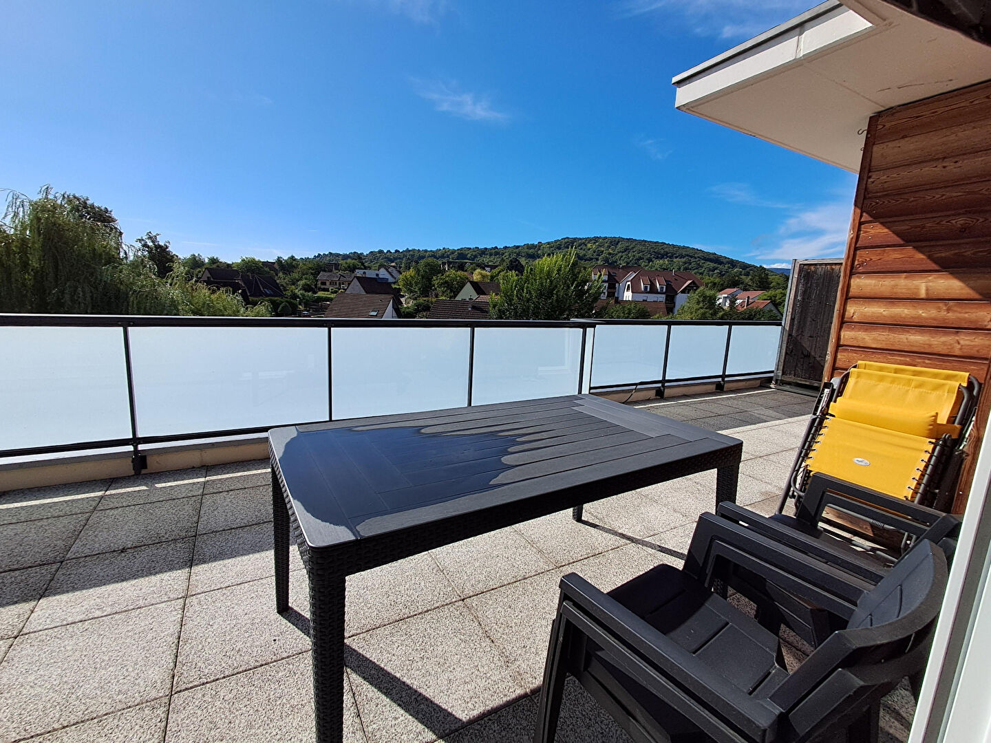 Le logement de 98 m2 dispose d’une spacieuse pièce de vie de plus de 32 m² donnant sur une grande terrasse de 35m2 qui offre une vue dégagée sur le Mont Sainte Odile, une cuisine entièrement équipée donnant également accès à la terrasse, une salle de bains et un WC.