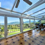 L’étage principal accueille la partie vie : une belle véranda baignée de lumière précède une grande terrasse (à réhabiliter) d’où l’on profite pleinement de la vue exceptionnelle.