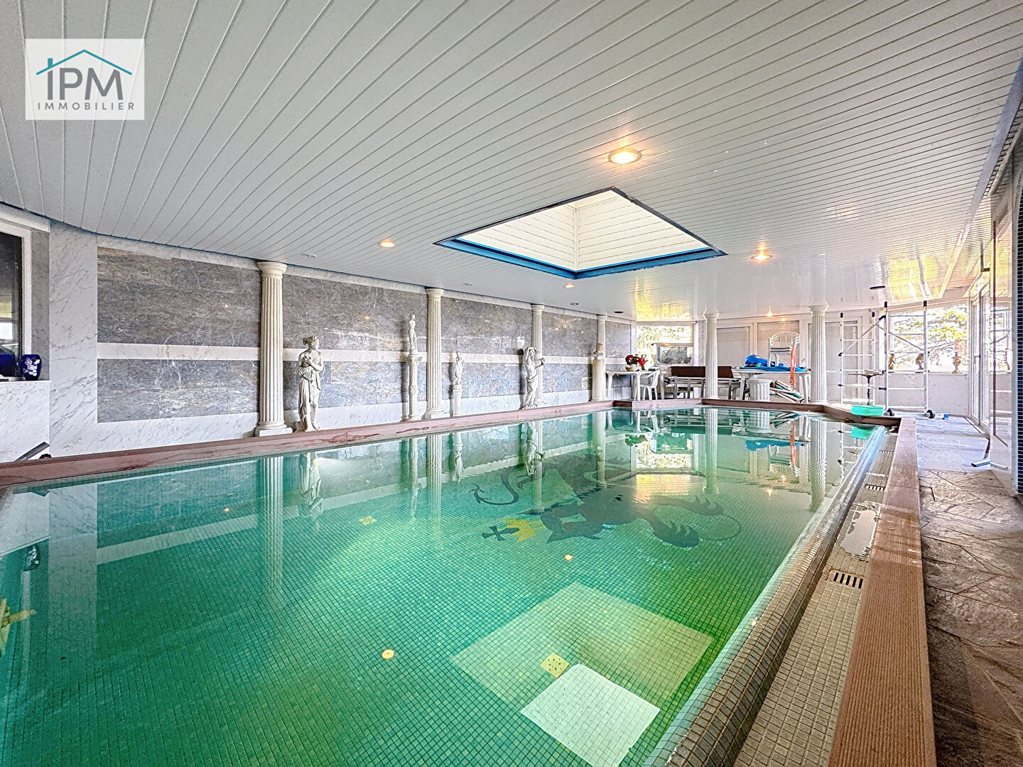 Ce niveau offre également un grand dégagement lumineux doté d’une baie vitrée ouvrant sur un espace avec piscine intérieure, ainsi qu’une salle d’eau avec douche et WC : un ensemble fonctionnel et polyvalent.