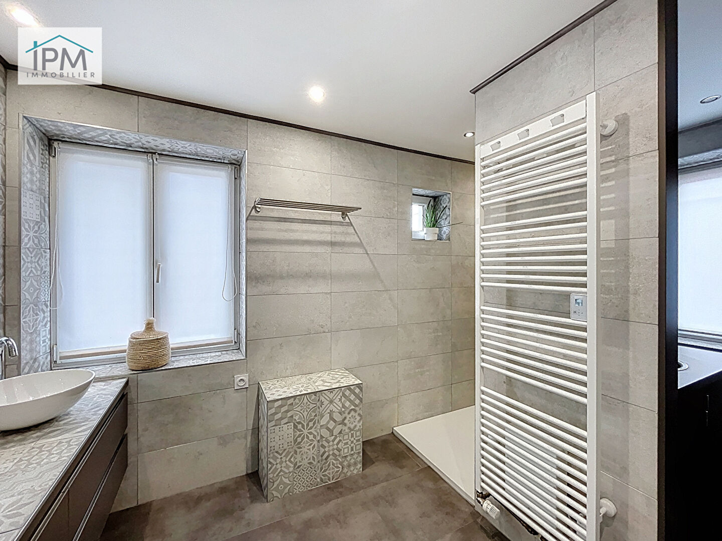 Au premier étage : 4 grandes chambres avec dressing, une salle d’eau moderne avec double vasque et espace buanderie ainsi que des WC séparés.