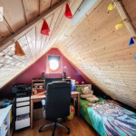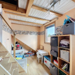 Au dernier niveau, l’espace nuit se compose de deux chambres, chacune avec un espace mezzanine, d’un palier ainsi que d’une salle de bains avec WC.