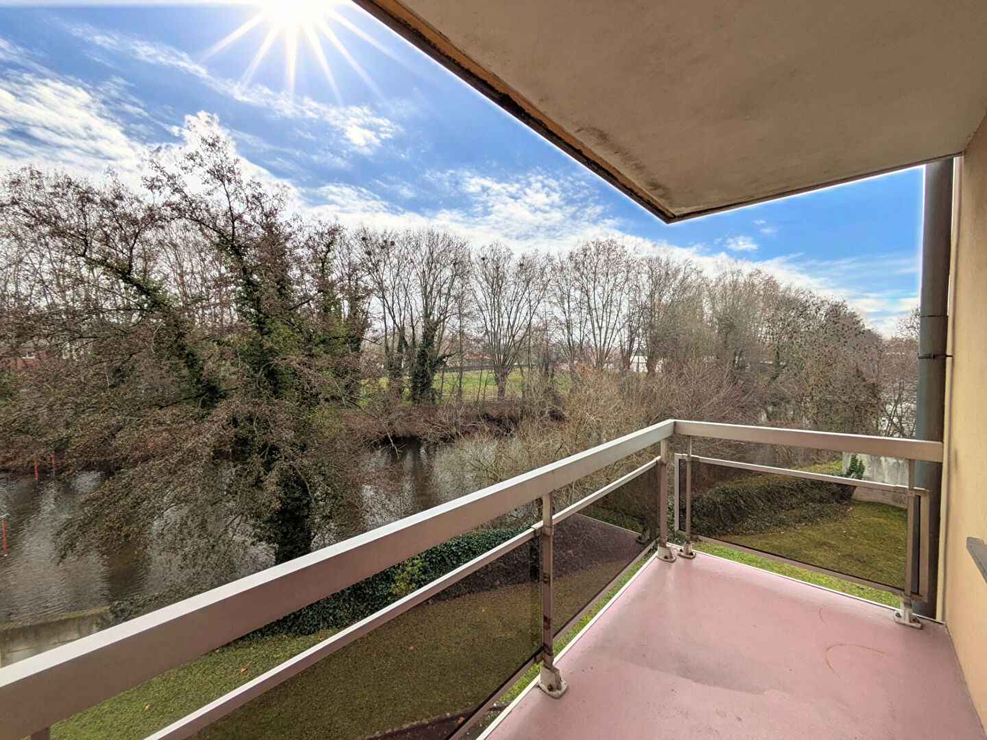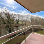 Le logement de 64m2 comprenant une entrée avec placard, une cuisine équipée donnant sur un balcon, un grand double séjour de 30m2 donnant accès à un second balcon vue sur l’eau, une chambre, un WC séparé, une salle de bains.