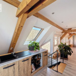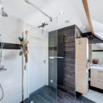 – Au rez-de-chaussée : une vaste entrée avec placards de rangement sur mesure, une grande pièce de vie avec cuisine ouverte sur mesure, un cellier, une salle de bains et un wc.