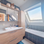 A l’étage un dégagement avec placard, deux chambres et une salle de bains.