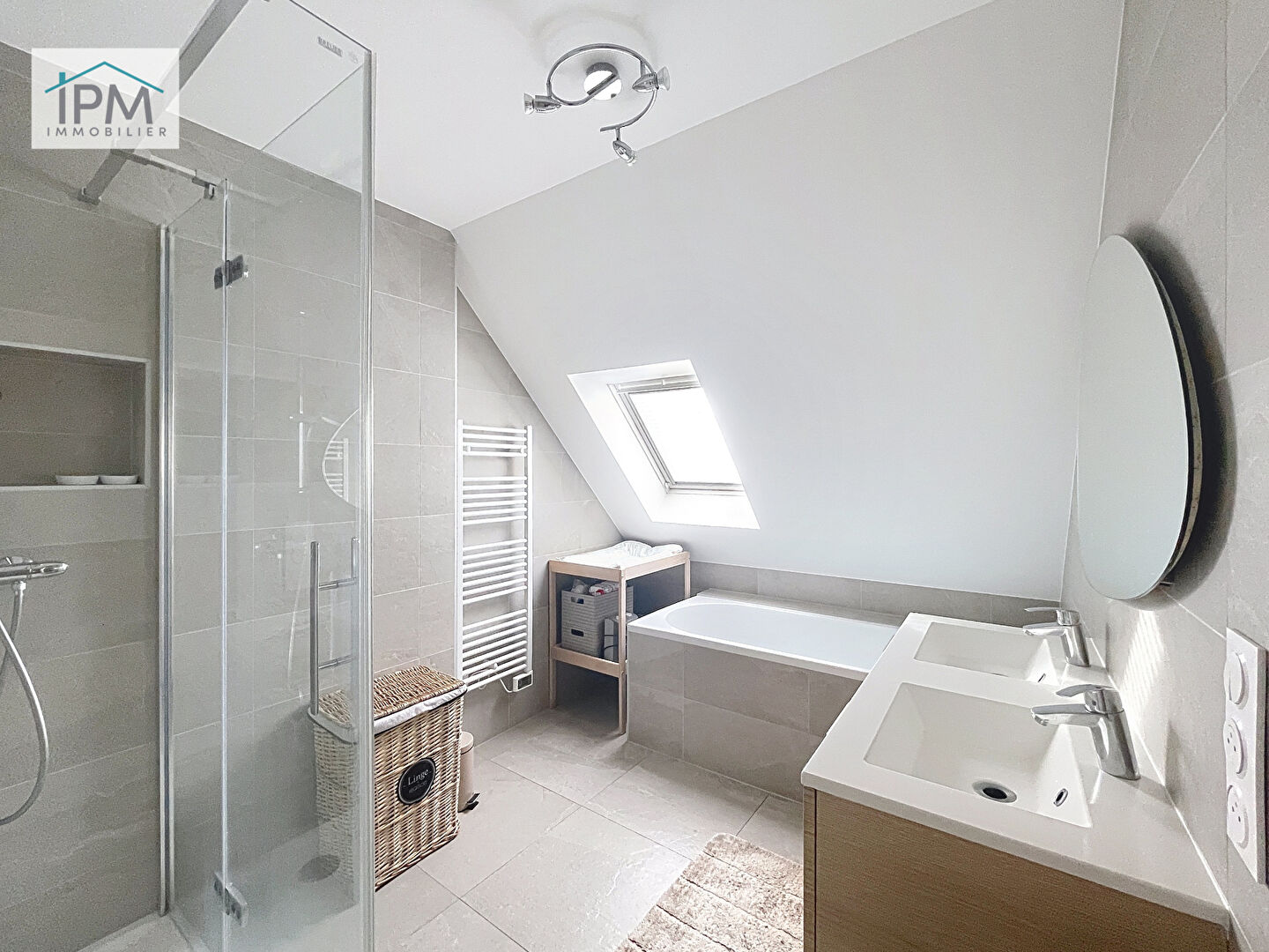 A l’étage, trois grandes chambres, dont une suite parentale avec dressing et salle d’eau privative. Une seconde salle de bain, équipée d’une baignoire et d’une douche, ainsi que des WC séparés, viennent compléter cet espace.