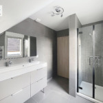 Un bureau fonctionnel, une buanderie, un cellier et des WC séparés complètent ce rez-de-chaussée parfaitement pensé. Le bureau et la buanderie peuvent facilement être transformés en chambre et salle d’eau, offrant ainsi un espace nuit de plain-pied.