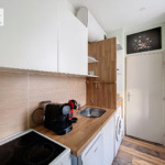 L’appartement se compose d’une pièce principale lumineuse intégrant un coin salon et un coin repas, avec un accès direct au balcon offrant une vue dégagée. Une petite cuisine indépendante, entièrement équipée, complète l’espace de vie. Le bien dispose également d’une chambre et d’une salle de bains avec WC. Le chauffage est individuel électrique.
