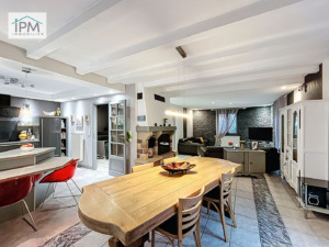 Un salon / salle à manger lumineux ouvert sur une cuisine installée il y a 7 ans,