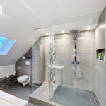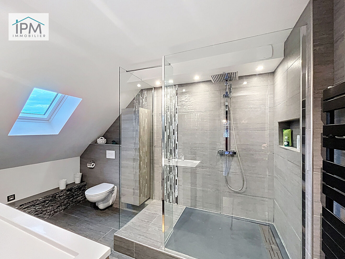 Une grande salle d’eau avec WC.