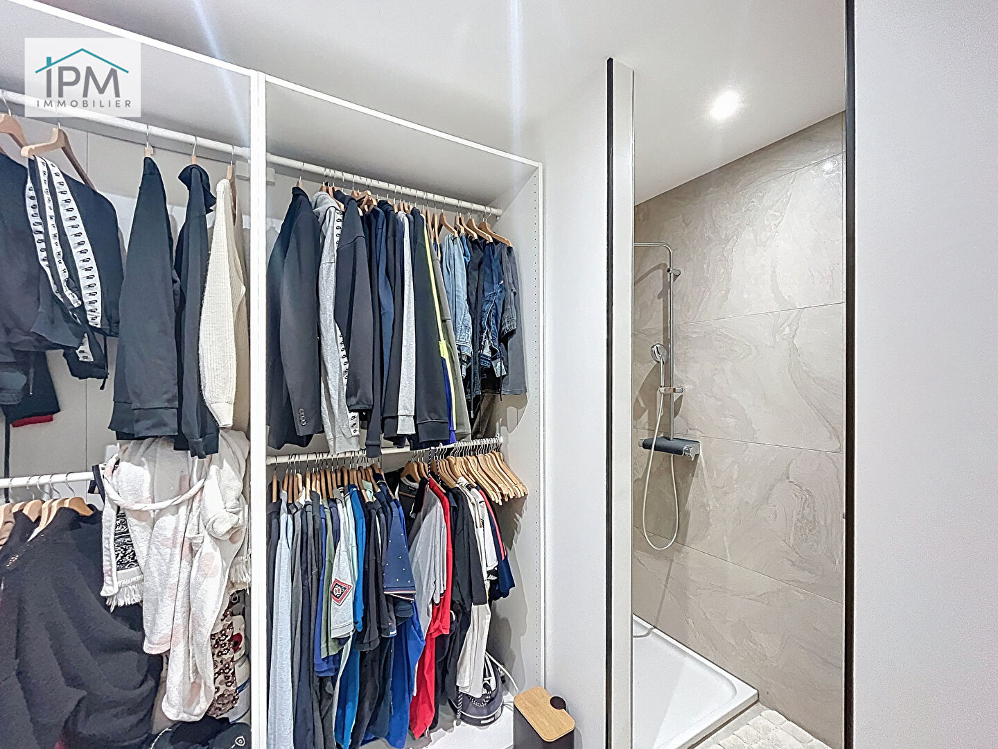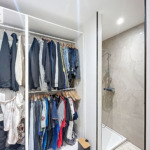?Une suite parentale disposant de son dressing et de sa salle d’eau privative avec douche et meuble vasque