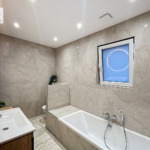 ?Une spacieuse salle de bain familiale équipée d’une douche, d’une baignoire et d’un WC