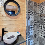 La Tiny House se compose d’une pièce de vie avec un coin nuit, d’une armoire de rangement, d’une cuisine équipée (four, plaque, hotte, frigo) et d’une salle d’eau (WC, douche et meuble vasque). A l’extérieur ,vous pourrez profiter pleinement d’une cour sans vis à vis.