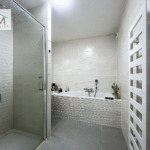 * Une salle de bain complète équipée d’une baignoire balnéo, d’une douche et d’un meuble vasque