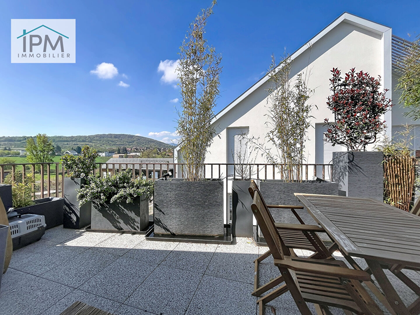 Vous profiterez également d’une agréable terrasse de 13 m², offrant une vue dégagée et imprenable sur le Bischenberg ainsi que sur les champs environnants, un véritable atout pour vos moments de détente.